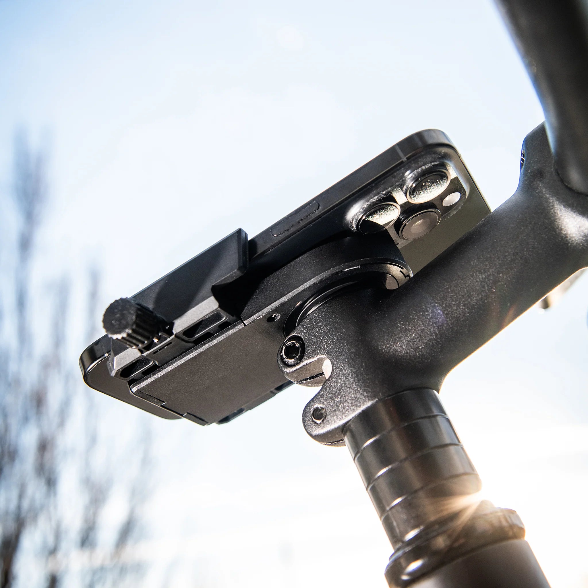 Este soporte, diseñado para bicicletas con el sistema E-Cap preinstalado, mantiene tu teléfono fijo y lo carga de forma inalámbrica, sin necesidad de una SP Connect Phone Case.